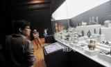 Jurnalis mengamati koleksi museum yang terdampak peristiwa kebakaran saat tur pembukaan kembali Museum Nasional Indonesia, Jakarta, Jumat (11/10/2024). Museum Nasional Indonesia atau yang dikenal dengan Museum Gajah, merupakan salah satu museum tertua dan terbesar di Asia Tenggara tersebut akan kembali dibuka untuk umum pada 15 Oktober 2024 mendatang usai enam ruangan di gedung A mengalami kebakaran pada 16 Oktober tahun lalu. (FOTO : Republika/Thoudy Badai)