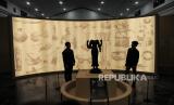 Jurnalis mengikuti tur pembukaan kembali Museum Nasional Indonesia, Jakarta, Jumat (11/10/2024). Museum Nasional Indonesia atau yang dikenal dengan Museum Gajah, merupakan salah satu museum tertua dan terbesar di Asia Tenggara tersebut akan kembali dibuka untuk umum pada 15 Oktober 2024 mendatang usai enam ruangan di gedung A mengalami kebakaran pada 16 Oktober tahun lalu. (FOTO : Republika/Thoudy Badai)