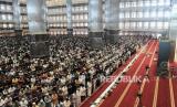 Jamaah mendengarkan khutbah jumat yang disampaikan Imam Besar Masjid Nabawi Syekh Ahmad bin Ali Al Hudhaify di Masjid Istiqlal, Jakarta, Jumat (11/10/2024). Dalam kunjungannya ke Indonesia, Imam Masjid Nabawi Syekh Ahmad bin Ali Al Hudhaify mengisi agenda khutbah jumat serta memimpin salat dihadapan ribuan jamaah di Masjid Istiqlal. Kunjungan ke Indonesia tersebut dalam rangka inisiatif Arab Saudi untuk mempererat hubungan diplomatik dan keagamaan dengan negara-negara islam, terutama Indonesia. Sebelumnya, dalam rangkaian kunjungannya, Syekh Ahmad bin Ali Al Hudhaify bertemu sejumlah pejabat tinggi negara, ormas islam serta lembaga pendidikan islam. (FOTO : Republika/Thoudy Badai)