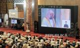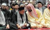 Imam Besar Masjid Nabawi Syekh Ahmad bin Ali Al Hudhaify memimpin salat jumat di Masjid Istiqlal, Jakarta, Jumat (11/10/2024). Dalam kunjungannya ke Indonesia, Imam Masjid Nabawi Syekh Ahmad bin Ali Al Hudhaify mengisi agenda khutbah jumat serta memimpin salat dihadapan ribuan jamaah di Masjid Istiqlal. Kunjungan ke Indonesia tersebut dalam rangka inisiatif Arab Saudi untuk mempererat hubungan diplomatik dan keagamaan dengan negara-negara islam, terutama Indonesia. Sebelumnya, dalam rangkaian kunjungannya, Syekh Ahmad bin Ali Al Hudhaify bertemu sejumlah pejabat tinggi negara, ormas islam serta lembaga pendidikan islam. (FOTO : Republika/Thoudy Badai)