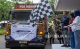 Penjabat Gubernur Jawa Barat Bey Triadi Machmudin (ketiga kanan) mengibarkan bendera saat melepas ekspor kopi Jawa Barat di Padalarang, Kabupaten Bandung Barat, Jawa Barat, Sabtu (12/10/2024). Pemerintah Daerah Provinsi Jawa Barat melepas ekspor 19,2 ton kopi arabica hasil produksi Kelompok Tani Kopi Wanoja senilai 2.000 dolar AS ke Arab Saudi dan 360 kilogram kopi arabica hasil produksi GravFarm senilai 4.600 dolar AS ke Belanda. (FOTO : ANTARA FOTO/Abdan Syakura)