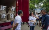 Penjabat Gubernur Jawa Barat Bey Triadi Machmudin (kanan) meninjau truk berisi kopi saat pelepasan ekspor kopi Jawa Barat di Padalarang, Kabupaten Bandung Barat, Jawa Barat, Sabtu (12/10/2024). Pemerintah Daerah Provinsi Jawa Barat melepas ekspor 19,2 ton kopi arabica hasil produksi Kelompok Tani Kopi Wanoja senilai 2.000 dolar AS ke Arab Saudi dan 360 kilogram kopi arabica hasil produksi GravFarm senilai 4.600 dolar AS ke Belanda. (FOTO : ANTARA FOTO/Abdan Syakura)