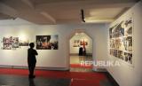 Pengunjung mengamati karya yang dipamerkan dalam pameran Legasi Jokowi 2014-2024 di Galeri Foto Jurnalistik Antara, Antara Heritage Center, Jakarta, Ahad (13/10/2024). Pameran yang diselenggarakan oleh LKBN ANTARA tersebut memamerkan sebanyak 145 karya foto dari pewarta foto Antara yang menggambarkan tentang perjalanan Presiden Republik Indonesia Joko Widodo dari menjabat sebagai Wali Kota Solo, Gubernur DKI Jakarta hingga menjadi Presiden Republik Indonesia selama dua periode dari 2014-2024. (FOTO : Republika/Thoudy Badai)