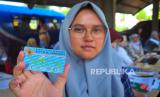 Peserta menunjukkan Kartu Tanda Penduduk (KTP) elektronik saat mengikuti jemput bola perekaman KTP elektronik di Balai Jagong, Kudus, Jawa Tengah, Ahad (13/10/2024). Dinas Kependudukan dan Pencatatan Sipil (Disdukcapil) Kabupaten Kudus melaksanakan jemput bola perekaman data KTP elektronik bagi pemilih pemula dengan target 1.000 orang pada Oktober 2024, sebagai upaya menyukseskan pemilihan kepala daerah (Pilkada) serentak 27 November 2024. (FOTO : ANTARA FOTO/Yusuf Nugroho)