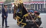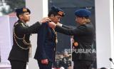 REPUBLIKA.CO.ID, JAKARTA -- Presiden Joko Widodo menerima anugerah medali kehormatan keamanan dan keselamatan publik Loka Praja Samrakshana dari Kapolri Jenderal Polisi Listyo Sigit Prabowo di Mako Brimob, Kelapa Dua, Depok, Jawa Barat, Senin (14/10/2024).