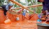 REPUBLIKA.CO.ID, LUMAJANG -- Warga mengambil air dari penampungan saat penyaluran bantuan air bersih di Desa Jenggrong, Kecamatan Ranuyoso, Lumajang, Jawa Timur, Selasa (15/10/2024).