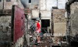 REPUBLIKA.CO.ID, JAKARTA -- Sejumlah warga menengok lokasi rumah yang terbakar di Jalan Kalianyar, Tambora, Jakarta, Selasa (15/05/2024).