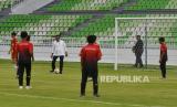 REPUBLIKA.CO.ID, DELI SERDANG -- Presiden Joko Widodo menendang bola usai peresmian Stadion Utama Sumatera Utara di Desa Sena, Batang Kuis, Deli Serdang, Selasa (15/10/2024).