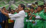 Presiden Joko Widodo berswafoto bersama sejumlah atlet Sumatera Utara saat peresmian Stadion Utama Sumatera Utara di Desa Sena, Batang Kuis, Deli Serdang, Selasa (15/10/2024). Presiden Joko Widodo meminta agar stadion yang dibangun menggunakan dana APBN (Anggaran Pendapatan dan Belanja Negara) sebesar Rp587 miliar dengan kapasitas 25.750 penonton tersebut segera diserahkan kepada para pengguna agar terawat dan tidak terbengkalai serta menjadi tempat pembinaan olahraga di Sumatera Utara. (FOTO : ANTARA FOTO/Fransisco Carolio)