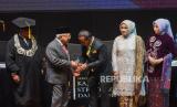Menteri ESDM Bahlil Lahadalia (tengah) didampingi ibu Nurjani (kedua kanan) dan istri Sri Suparni (kanan) menerima ucapan selamat dari Wakil Presiden Maruf Amin (kedua kiri) usai Sidang Promosi Doktor di Bidang Kajian Stratejik dan Global dirinya di Gedung Makara Art Center, Kampus Universitas Indonesia, Depok, Jawa Barat, Rabu (16/10/2024). Bahlil meraih gelar doktor pada Program Studi Doktor Kajian Stratejik Global, Sekolah Kajian Stratejik dan Global (SKSG) UI dengan disertasinya yang berjudul Kebijakan, Kelembagaan, dan Tata Kelola Hilirisasi Nikel yang Berkeadilan dan Berkelanjutan di Indonesia dan meraih predikat Cumlaude. (FOTO : ANTARA FOTO/Indrianto Eko Suwarso)