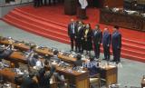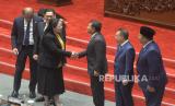REPUBLIKA.CO.ID, JAKARTA -- Kepala BIN terpilih Muhammad Herindra bersama ketua DPR Puan Maharani serta pimpinan DPR menghadiri rapat Paripurna DPR ke-4 masa persidangan I tahun sidang 2024-2025 di Gedung Nusantara II, kompleks Parlemen, Senayan, Jakarta, Kamis (17/10/2024).