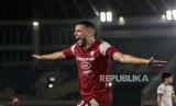 REPUBLIKA.CO.ID, SOLO -- Pesepak bola Persis Solo Karim Rossi berselebrasi usai mencetak gol ke gawang Borneo FC Samarinda dalam pertandingan BRI Liga 1 di Stadion Manahan, Solo, Jawa Tengah, Sabtu (19/10/2024).
