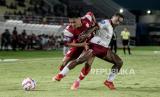 Pesepak bola Persis Solo Rizky Dwi Febrianto (kiri) berebut bola dengan pesepak bola Borneo FC Samarinda Terens Owang Priska Puhiri (kanan) dalam pertandingan BRI Liga 1 di Stadion Manahan, Solo, Jawa Tengah, Sabtu (19/10/2024). Persis Solo menang atas Borneo FC Samarinda dengan skor 3-2. (FOTO : ANTARA FOTO/Mohammad Ayudha)