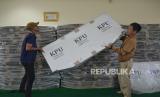 Panitia Pemilihan Kecamatan (PPK) Senen menata logistik Pilgub DKI Jakarta 2024 di Kantor Kecamatan Senen, Jakarta , Senin (21/10/2024). PPK Kecamatan Senen telah menerima logistik pilgub DKI Jakarta 2024 berupa 189 kotak suara, 756 bilik suara dan perlengkapan berupa alat coblos, bantalan dan tinta sebanyak 189 paket, yang nantinya akan didistribusikan ke 189 tempat pemungutan suara (TPS) yang berada Kecamatan Senen. (FOTO : Republika/Prayogi)