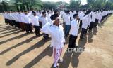 Sejumlah santri mengikuti upacara memperingati Hari Santri Nasional di Lapangan Maulana Yudha Negara, Tigaraksa, Kabupaten Tangerang, Banten, Selasa (22/10/2024). Upacara yang diikuti perwakilan pondok pesantren se-Kabupaten Tangerang tersebut mengusung tema Menyambung Juang, Merengkuh Masa Depan. (FOTO : ANTARA FOTO/Sulthony Hasanuddin)
