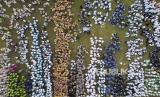 Foto udara sejumlah santri mengikuti upacara Hari Santri Nasional di Stadion Wiradadaha, Kota Tasikmalaya, Jawa Barat, Selasa (22/10/2024). Upacara dan kirab santri yang diikuti 90 ribu santri dari 274 pondok pesantren se-Kota Tasikmalaya dalam rangka memperingati rangkaian Hari Santri Nasional ke-10 dengan tema Menyambung Juang Merengkuh Masa Depan. (FOTO : ANTARA FOTO/Adeng Bustomi)