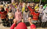 Sejumlah santri yang mengenakan pakaian adat menyanyikan Mars Santri usai mengikuti apel Hari Santri Nasional di Kompleks Perguruan Alkhairaat di Palu, Sulawesi Tengah, Selasa (22/10/2024). Peringatan Hari Santri Nasional di Palu dilaksanakan dengan apel bersama ribuan santri dari berbagai perguruan Islam dan pesantren. (FOTO : ANTARA FOTO/Basri Marzuki)