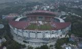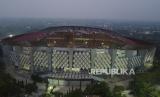 Foto udara kondisi kerusakan atap Stadion Wibawa Mukti di Cikarang Pusat, Kabupaten Bekasi, Jawa Barat, Selasa (22/10/2024). Kerusakan atap Stadion Wibawa Mukti bagian barat karena diterjang angin kencang disertai hujan pada (21/10) pukul 14.30 WIB dan Pemerintah setempat bersama Kementerian Pekerjaan Umum dan Perumahan Rakyat (PUPR) tengah melakukan inventarisasi total kerugian dari kerusakan atap stadion tersebut. (FOTO : ANTARA FOTO/Fakhri Hermansyah)