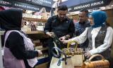 Sejumlah pengunjung melihat produk kain batik yang dijajakan dalam Pertamina Small Medium Enterprise Expo (SMEXPO) 2024 di Mal Kota Kasablanka, Jakarta, Selasa (22/10/2024). Kegiatan yang berlangsung hingga 27 Oktober 2024 bertemakan Lokal jadi Vokal tersebut diikuti 43 UMKM binaan Pertamina yang berpartisipasi secara online maupun offline. (FOTO : ANTARA FOTO/Aprillio Akbar)