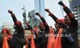 REPUBLIKA.CO.ID, JAKARTA -- Sejumlah buruh mengikuti unjuk rasa di kawasan Patung Kuda, Jakarta, Kamis (24/10/2024).