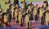 Presiden RI ke-8 Prabowo Subianto bersama jajaran Kabinet Merah Putih mengikuti sesi olahraga dan latihan baris berbaris bersama di Lapangan Sapta Marga, Akademi Militer Magelang, Jumat (25/10/2024). Giat pertama retreat Kabinet Merah Putih diisi dengan sesi olahraga dan latihan baris berbaris. Para menteri dan wakil menteri telah bersiap dibangunkan sejak pukul 04:00 WIB untuk melakukan kegiatan berolahraga dan latihan baris berbaris. (FOTO : Tim Media Prabowo)