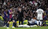 Reaksi pelatih Real Madrid Carlo Ancelotti saat melawan Barcelona pada pertandingan sepak bola La Liga Spanyol di stadion Santiago Bernabeu di Madrid, Spanyol, Ahad (27/10/2024). Barcelona berhasil menaklukkan Madrid dengan skor telak 4-0. Robert Lewandowski mencetak dua gol di menit 54 dan 56. Sedangkan dua gol lainnya dicetak Lamine Yamal menit ke-77 dan Raphinha menit ke-84. (FOTO : AP Photo/Bernat Armangue)