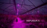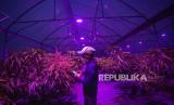 REPUBLIKA.CO.ID, INDRAMAYU -- Petani dari kelompok Salam Tani merawat tanaman mangga jenis Miyazaki yang dibudidaya dengan penyinaran lampu Ultraviolet di Sliyeg, Indramayu, Jawa Barat, Senin (28/10/2024).