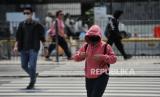Warga beraktivitas di kawasan Sudirman, Jakarta, Selasa (29/10/2024). Badan Meteorologi, Klimatologi dam Geofisika (BMKG) mengimbau masyarakat untuk mewaspadai dampak suhu panas di beberapa wilayah di Indonesia. Sementara untuk wilayah DKI Jakarta dan Banten suhu panas maksimum mencapai 34,6 hingga 34,9 derajat celcius. Warga diminta menggunakan alat kelindung kepala seperti payung, topi atau yang lainnya untuk menghindari paparan sinar Ultra Violet (UV) serta mengonsumsi air minum secara cukup dan teratur agar terhindar dari dehidrasi terutama saat beraktivitas di luar ruangan. (FOTO : Republika/Thoudy Badai)