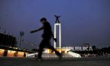Warga berolahraga di Lapangan Banteng, Jakarta, Selasa (29/10/2024). Keberadaan ruang publik di Jakarta salah satunya Lapangan Banteng, dapat dijadikan sarana berolahraga, sekaligus menikmati suasana ruang terbuka hijau. Sementara, Pemprov DKI Jakarta pada tahun 2024 membangun sebanyak 29 ruang terbuka hijau di sejumlah wilayah di DKI Jakarta seluas 5,1 hektar. (FOTO : Republika/Thoudy Badai)