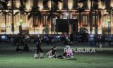 Warga beristirahat di Lapangan Banteng, Jakarta, Selasa (29/10/2024). Keberadaan ruang publik di Jakarta salah satunya Lapangan Banteng, dapat dijadikan sarana berolahraga, sekaligus menikmati suasana ruang terbuka hijau. Sementara, Pemprov DKI Jakarta pada tahun 2024 membangun sebanyak 29 ruang terbuka hijau di sejumlah wilayah di DKI Jakarta seluas 5,1 hektar. (FOTO : Republika/Thoudy Badai)