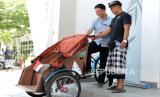 REPUBLIKA.CO.ID, DENPASAR -- Warga mengamati becak listrik saat peresmian Kantor Persatuan Becak Listrik Indonesia (PBLI) di Denpasar, Bali, Selasa (29/10/2024).