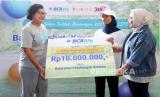 Direktur Kepatuhan BCA Life Sukawati Lubis didampingi Head of Marketing Communications BCA Life Lely Pekih menyerahkan secara simbolis donasi penanggulangan stunting kepada Lurah Petukangan Selatan Thia Mutiara Hadyanti disela kegiatan literasi keuangan dan asuransi bagi masyarakat umum di Ruang Publik Terbuka Ramah Anak (RPTRA) Kelurahan Petukangan Selatan, Kecamatan Pesanggrahan, Jakarta Selatan, Ahad (27/10/2024). Kegiatan ini merupakan bagian dari puncak Bulan Inklusi Keuangan (BIK) 2024 yang digagas oleh Otoritas Jasa Keuangan (OJK), bertujuan untuk mempercepat peningkatan inklusi keuangan nasional. (FOTO : Dok Republika)