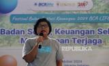 Direktur Kepatuhan BCA Life Sukawati Lubis membuka kegiatan literasi keuangan dan asuransi bagi masyarakat umum di Ruang Publik Terbuka Ramah Anak (RPTRA) Kelurahan Petukangan Selatan, Kecamatan Pesanggrahan, Jakarta Selatan, Ahad (27/10/2024). Kegiatan ini merupakan bagian dari puncak Bulan Inklusi Keuangan (BIK) 2024 yang digagas oleh Otoritas Jasa Keuangan (OJK), bertujuan untuk mempercepat peningkatan inklusi keuangan nasional. (FOTO : Dok Republika)