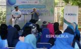 Head of Marketing Communications BCA Life Lely Pekih memberikan materi dalam kegiatan literasi keuangan dan asuransi bagi masyarakat umum di Ruang Publik Terbuka Ramah Anak (RPTRA) Kelurahan Petukangan Selatan, Kecamatan Pesanggrahan, Jakarta Selatan, Ahad (27/10/2024). Kegiatan ini merupakan bagian dari puncak Bulan Inklusi Keuangan (BIK) 2024 yang digagas oleh Otoritas Jasa Keuangan (OJK), bertujuan untuk mempercepat peningkatan inklusi keuangan nasional. (FOTO : Dok Republika)