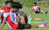 Pelatih Timnas Indonesia U20 Indra Sjafri (kedua kanan) memberikan instruksi saat memimpin pemusatan latihan di Training Center Bali United, Pantai Purnama, Gianyar, Bali, Rabu (30/10/2024). Timnas U-20 melakukan pemusatan latihan di Bali hingga 3 November mendatang sebelum menjalani pemusatan latihan lanjutan ke Jepang sebagai persiapan mengikuti Piala Asia U-20 2025. (FOTO : ANTARA FOTO/Fikri Yusuf)