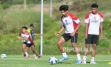 Pesepak bola Timnas Indonesia U-20 Dony Tri Pamungkas (kanan) bersama rekan setimnya menjalani pemusatan latihan di Training Center Bali United, Pantai Purnama, Gianyar, Bali, Rabu (30/10/2024). Timnas U-20 melakukan pemusatan latihan di Bali hingga 3 November mendatang sebelum menjalani pemusatan latihan lanjutan ke Jepang sebagai persiapan mengikuti Piala Asia U-20 2025. (FOTO : ANTARA FOTO/Fikri Yusuf)