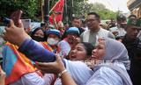 Dalam kesempatannya, calon Gubernur Ridwan Kamil melakukan blusukan menyapa warga di pemukiman padat penduduk di kawasan Pangadegan sekaligus berdialog dengan warga untuk menyerap aspirasi.