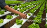Petani memeriksa kondisi selada air di perkebunan hidroponik Samata Green House (SGH), Kabupaten Gowa, Sulawesi Selatan, Jumat (1/11/2024). Petani milenial di perkebunan tersebut mampu memproduksi selada hingga rata-rata 600 kilogram per bulan dengan memanfaatkan pembangkit listrik tenaga surya sebagai sumber energi untuk mengoperasikan kipas sirkulasi dan mesin embun. (FOTO : ANTARA FOTO/Hasrul Said)