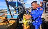 REPUBLIKA.CO.ID, ACEH -- Personel Kepolisian Polres Aceh Timur menyegel dan memasang pita garis polisi pada kapal motor KM Jeddah saat tiba di Pelabuhan Perikanan Nusantara (PPN) Idi Rayeuk, Aceh Timur, Aceh, Jumat (1/11/2024).