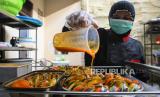 REPUBLIKA.CO.ID, TANGSEL -- Koki memasak menu makanan diet sehat di Hanan Catering, Tangerang Selatan, Banten, Senin (4/11/2024).