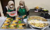 Dua pekerja mengemas menu makanan diet sehat di Hanan Catering, Tangerang Selatan, Banten, Senin (4/11/2024). Jasa boga tersebut menyediakan ratusan menu makanan diet sehat seharga Rp50 ribu per menu guna membantu program diet dan menjaga kesehatan masyarakat. (FOTO : ANTARA FOTO/Sulthony Hasanuddin)