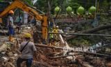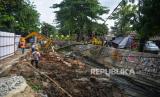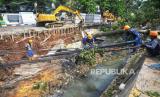 REPUBLIKA.CO.ID, JAKARTA -- Sejumlah pekerja melakukan penanganan terhadap turap kali yang longsor di Utan Kayu, Jakarta, Senin (4/11/2024).