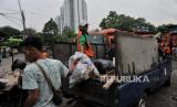 REPUBLIKA.CO.ID, JAKARTA -- Petugas mengangkut sampah ke atas mobil truk untuk dibawa menuju Tempat Pengolahan Sampah Terpadu (TPST) Bantargebang, Bekasi di Bank Sampah Depo Menteng Atas, Setiabudi, Jakarta, Senin (4/11/2024).