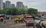 Petugas menutup sampah menggunakan kain terpal sebelum dibawa menuju Tempat Pengolahan Sampah Terpadu (TPST) Bantargebang, Bekasi di Bank Sampah Depo Menteng Atas, Setiabudi, Jakarta, Senin (4/11/2024). Pemprov DKI Jakarta menargetkan akan melakukan pengurangan sampah sebesar 30 persen dan penanganan mencapai 70 persen pada tahun 2025. Sementara berdasarkan data Bank Sampah Depo Menteng Atas, jumlah sampah harian di wilayah Kecamatan Setiabudi menncapai 100 ton per hari dan sekitar 7.000 ton per hari untuk seluruh wilayah di DKI Jakarta. (FOTO : Republika/Thoudy Badai)