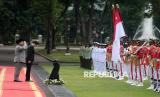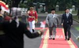 Presiden Prabowo Subianto (kiri) bersama Perdana Menteri Singapura Lawrence Wong (kanan) berjalan untuk memeriksa pasukan di Istana Merdeka, Jakarta, Rabu (6/11/2024). Presiden Prabowo menerima kunjungan kenegaraan Perdana Menteri Singapura Lawrence Wong di Istana Kepresidenan Jakarta. (FOTO : EPA-EFE/ADI WEDA)