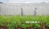 Petani merawat tanaman bawang daun di Kebun Maisa Petani, Ciganjur, Jakarta Selatan, Rabu (6/11/2024). Kebun Maisa Petani merupakan salah satu kebun percontohan yang dikelola secara mandiri oleh warga, dengan memanfaatkan lahan terbatas menggunakan beragam teknik tanam seperti hidroponik, aquaponik dan terapan organik di lahan seluas 3.500 meter persegi. Kebun tersebut menanam beragam jenis tanaman produktif seperti sayuran bayam hijau, bayam batik, pakcoy, siomak, jagung, gingseng, daun cincau hingga daun mint yang dijual ke warga sekitar dan beberapa supermarket hingga cafe. Dalam sekali panen, Kebun Maisa Petani mampu menghasulkan sebanyak 100 kilogram pakcoy, 20 kilogram bayam hingga gingseng dan daun mint. Keberadaan Kebun Maisa Petani menjadi contoh upaya masyarakat untuk melakukan swasembada pangan di daerah sekitarnya. (FOTO : Republika/Thoudy Badai)