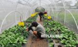 Petani merawat tanaman pakcoy di Kebun Maisa Petani, Ciganjur, Jakarta Selatan, Rabu (6/11/2024). Kebun Maisa Petani merupakan salah satu kebun percontohan yang dikelola secara mandiri oleh warga, dengan memanfaatkan lahan terbatas menggunakan beragam teknik tanam seperti hidroponik, aquaponik dan terapan organik di lahan seluas 3.500 meter persegi. Kebun tersebut menanam beragam jenis tanaman produktif seperti sayuran bayam hijau, bayam batik, pakcoy, siomak, jagung, gingseng, daun cincau hingga daun mint yang dijual ke warga sekitar dan beberapa supermarket hingga cafe. Dalam sekali panen, Kebun Maisa Petani mampu menghasulkan sebanyak 100 kilogram pakcoy, 20 kilogram bayam hingga gingseng dan daun mint. Keberadaan Kebun Maisa Petani menjadi contoh upaya masyarakat untuk melakukan swasembada pangan di daerah sekitarnya. (FOTO : Republika/Thoudy Badai)
