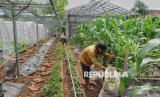 Petani merawat tanaman jagung di Kebun Maisa Petani, Ciganjur, Jakarta Selatan, Rabu (6/11/2024). Kebun Maisa Petani merupakan salah satu kebun percontohan yang dikelola secara mandiri oleh warga, dengan memanfaatkan lahan terbatas menggunakan beragam teknik tanam seperti hidroponik, aquaponik dan terapan organik di lahan seluas 3.500 meter persegi. Kebun tersebut menanam beragam jenis tanaman produktif seperti sayuran bayam hijau, bayam batik, pakcoy, siomak, jagung, gingseng, daun cincau hingga daun mint yang dijual ke warga sekitar dan beberapa supermarket hingga cafe. Dalam sekali panen, Kebun Maisa Petani mampu menghasulkan sebanyak 100 kilogram pakcoy, 20 kilogram bayam hingga gingseng dan daun mint. Keberadaan Kebun Maisa Petani menjadi contoh upaya masyarakat untuk melakukan swasembada pangan di daerah sekitarnya. (FOTO : Republika/Thoudy Badai)