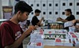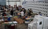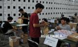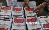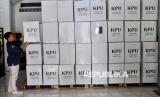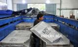 Petugas merapikan0 logistik Pilkada 2024 di Gudang Logistik KPU Kota Batu, Jawa Timur, Sabtu (9/11/2024). Komisi Pemilihan Umum (KPU) Jawa Timur memastikan kesiapan logistik untuk pelaksanaan Pilkada 2024 serentak saat ini telah mencapai 97 persen sebelum didistribusikan ke Panitia Pemungutan Suara (PPS) tingkat Kecamatan pada pekan depan. (FOTO : Republika/Thoudy Badai)