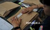 Petugas menyortir surat suara Pilkada 2024 di Gudang Logistik KPUD Kota Malang, Jawa Timur, Sabtu (9/11/2024). Komisi Pemilihan Umum (KPU) Jawa Timur memastikan kesiapan logistik untuk pelaksanaan Pilkada 2024 serentak saat ini telah mencapai 97 persen sebelum didistribusikan ke Panitia Pemungutan Suara (PPS) tingkat Kecamatan pada pekan depan. (FOTO : Republika/Thoudy Badai)